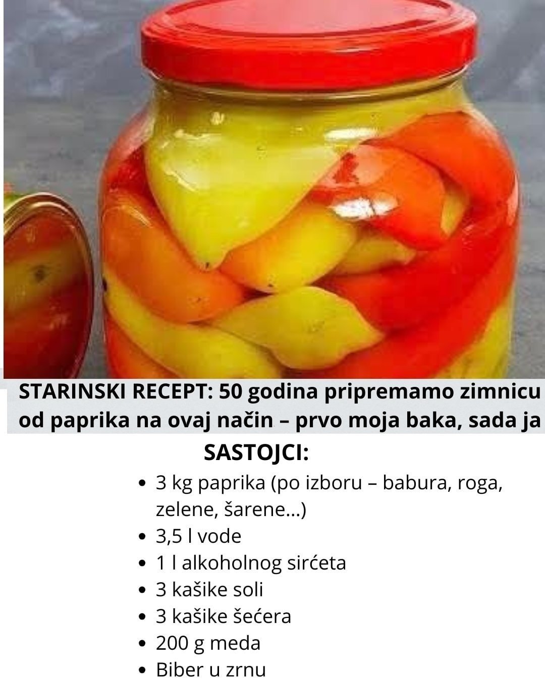 STARINSKI RECEPT: 50 godina pripremamo zimnicu od paprika na ovaj način – prvo moja baka, sada ja. Kuvar sa receptima Paprika seme Pripremite papriku za zimu po ovom receptu, oduševiće vas. Barene paprike iz tegle sa medom. Recept za zimnicu od…