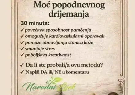 Popodnevno spavanje poznato i kao drijemanje može imati različite pozitivne učinke na zdravlje, pod uslovom da se pravilno izvodi i da se ne narušava noćni san. Drijemanje po danu ima brojne prednosti za raspoloženje, pamćenje i kreativnosti a pomaže i u…