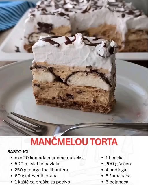 Ako tražite tortu koja je istovremeno impresivna na pogledu i udobna na ukusu, Mančmelou torta je pravi izbor. Ovaj desert spaja laganu beze koru, bogati karamel-vanila fil, komadiće popularnih mančmelou keksa i završni sloj umućene slatke pavlake.…