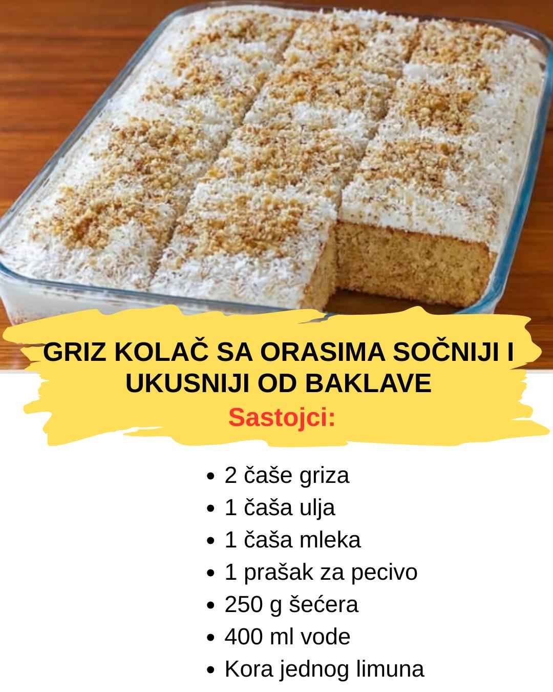 Griz kolač sa orasima – sočniji i ukusniji od baklave!