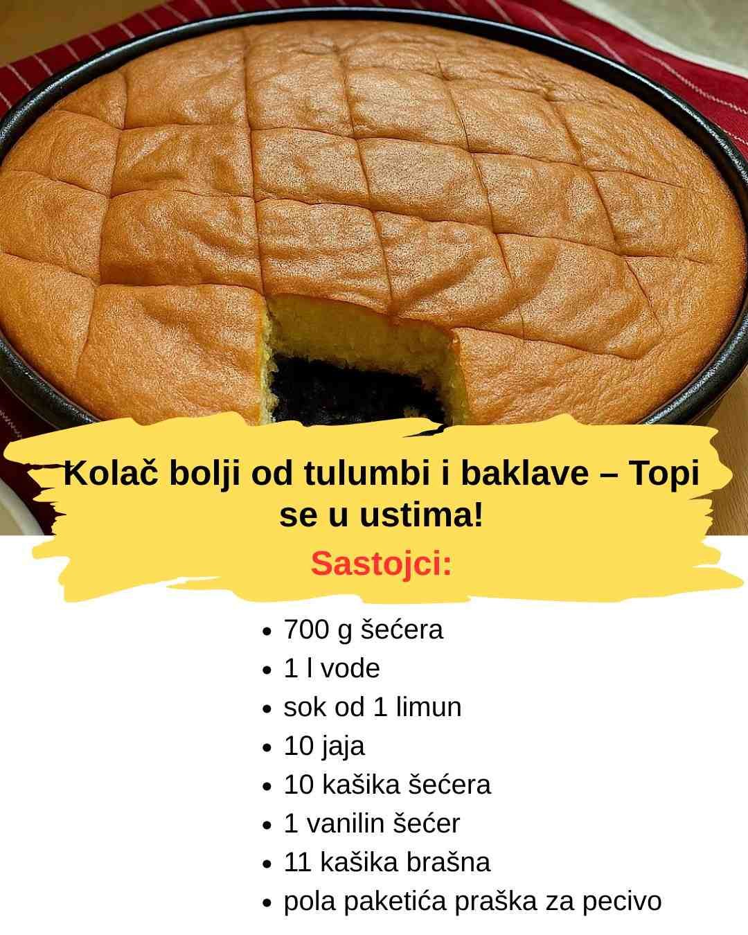 Kolač bolji od tulumbi i baklave – Topi se u ustima!