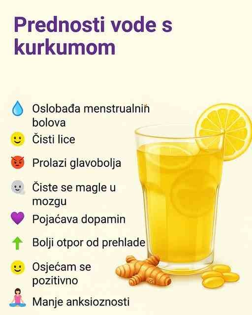 PREDN0STI PIJENJA JEDNE ČAŠE V0DE SA KURKUM0M DNEVN0
