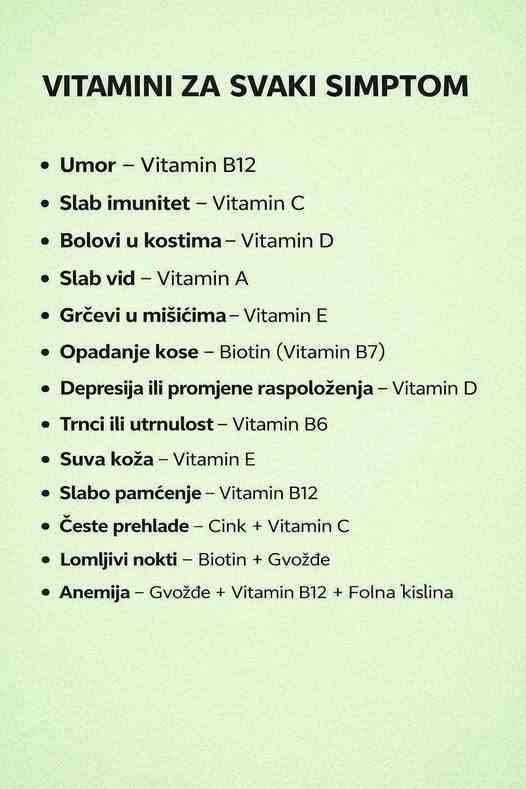 Naše tijelo nam svakodnevno šalje signale kada mu nešto nedostaje. Umor, slab imunitet, bolovi u kostima ili opadanje kose često nisu slučajni – vrlo često su znak nedostatka određenih vitamina i minerala. Umor i slabo pamćenje mogu ukazivati na manjak…