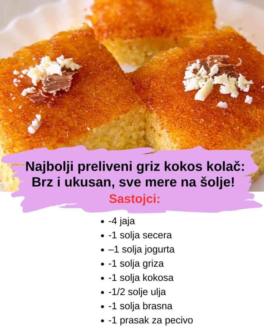 Griz kolač – najjednostavniji recept za ukusan desert! Mjera na čaše.