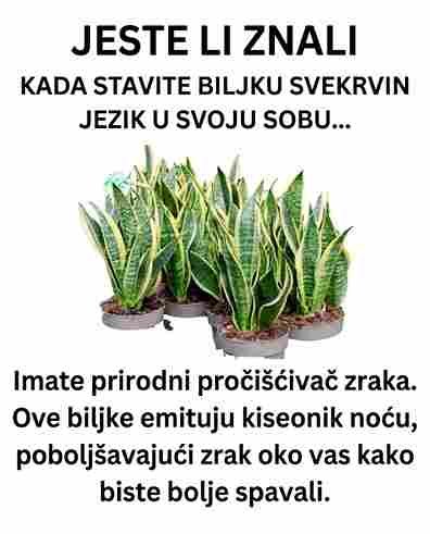 Zmijska biljka, poznata i kao Sansevieria ili „Majčin jezik“, nije samo dekorativna biljka za vaš dom – ona je i moćan prirodni pročišćivač vazduha. Postavljanje ove biljke u sobu može poboljšati kvalitetu zraka i doprinijeti vašem zdravlju na više…