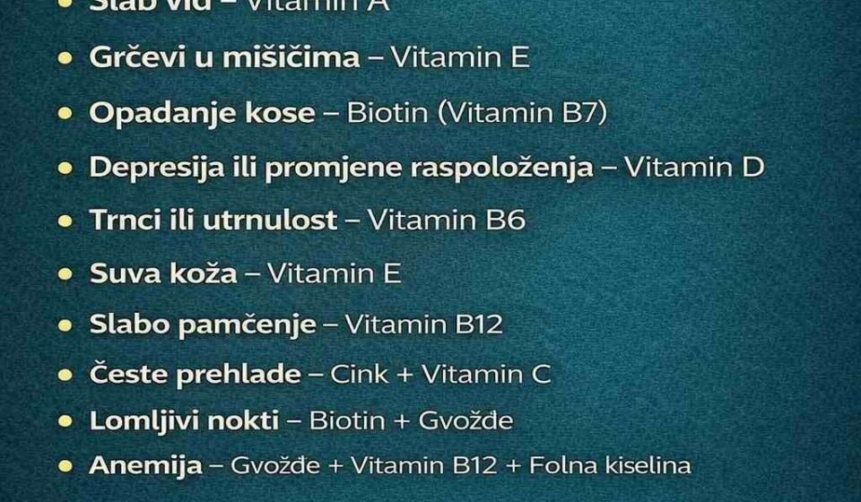 Naše tijelo nam svakodnevno šalje signale kada mu nešto nedostaje. Umor, slab imunitet, bolovi u kostima ili opadanje kose često nisu slučajni – vrlo često su znak nedostatka određenih vitamina i minerala.